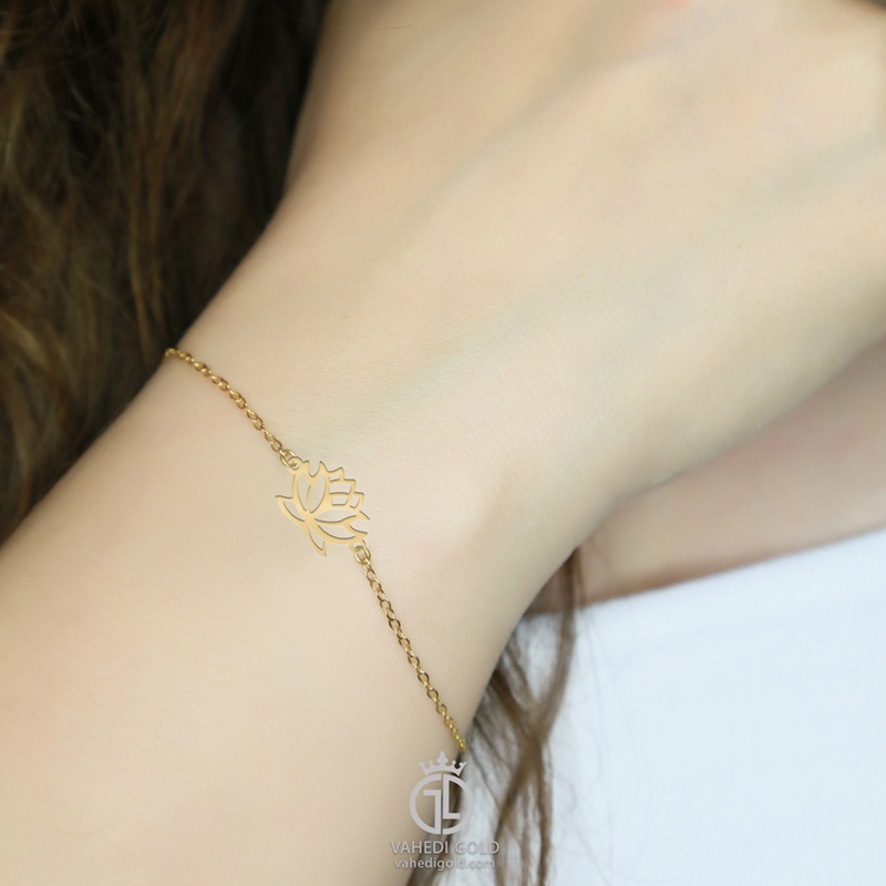 این دستبند الهام‌گرفته از گل نیلوفر، نمادی از آرامش و پاکی است. طراحی ظریف گل روی بند بافت‌دار مقاوم قرار گرفته تا هم جلوه‌ای لطیف داشته باشد و هم برای استفاده روزانه مناسب باشد. ساخته‌شده از طلا یا نقره ۱۸ عیار با پرداخت دقیق، انتخابی عالی برای کسانی است که به معنا و ظرافت در زیورآلات اهمیت می‌دهند.